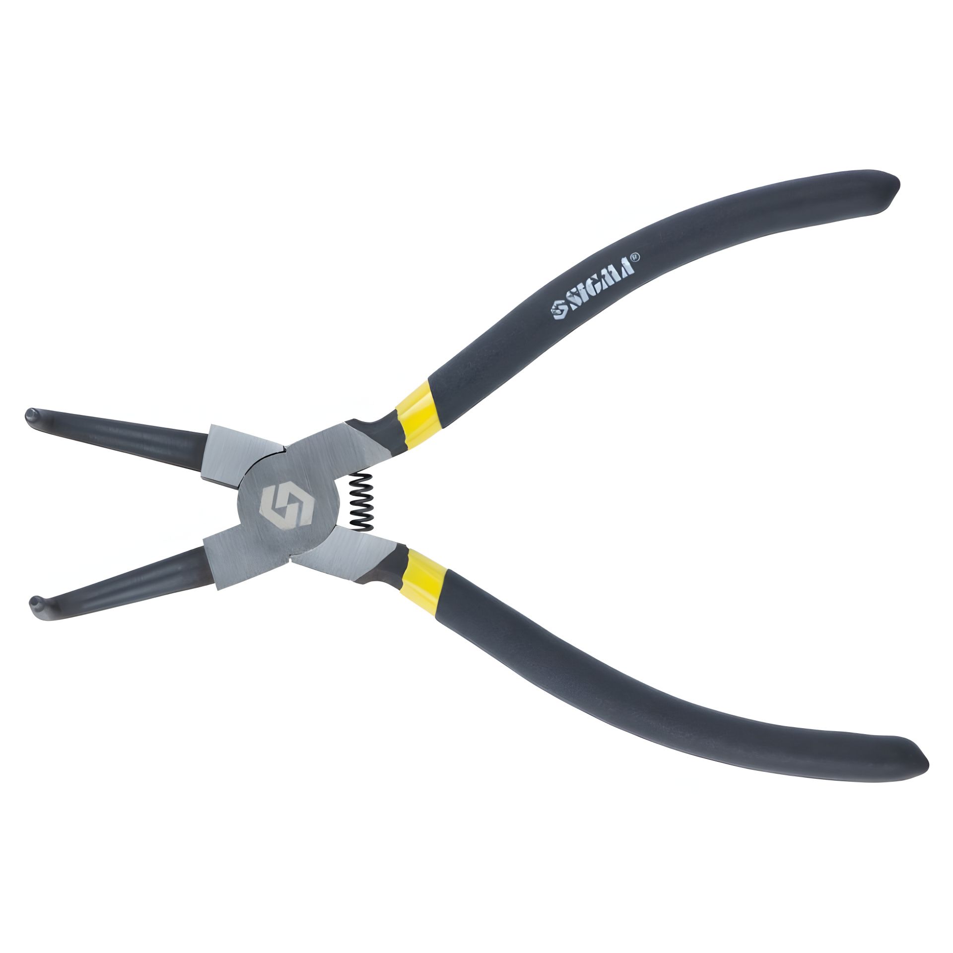 Знімач стопорних кілець 200мм (внутрішні гнуті) SIGMA (4350161) призначений для монтажу та демонтажу внутрішніх та зовнішніх стопорних кілець. Виготовлені із високовуглецевої інструментальної сталі, пройшли термічну обробку.