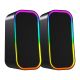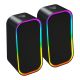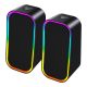 - Эти колонки выполнены в стильном корпусе со скруглёнными рёбрами и яркой RGB–окантовкой передних панелей.